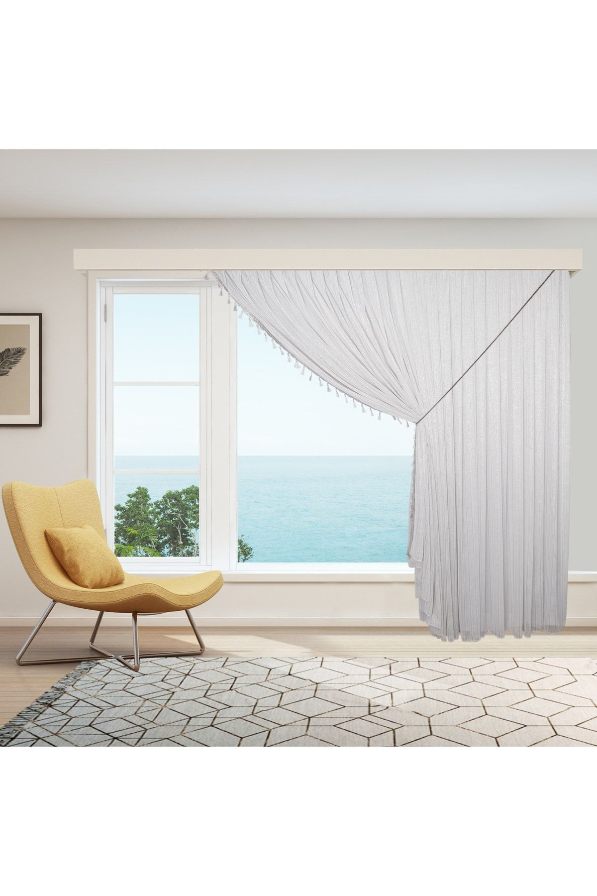 GÜMÜŞ GRİ TÜL PERDE - TEK KANAT HALATLI PÜSKÜLLÜ TÜL PERDE